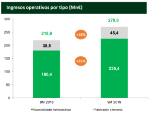 También el negocio de fabricación a terceros ha crecido un 18% con respecto al año anterior hasta alcanzar los 45,4 millones e impulsado por la división de inyectables, cuyas ventas crecieron un 39%.