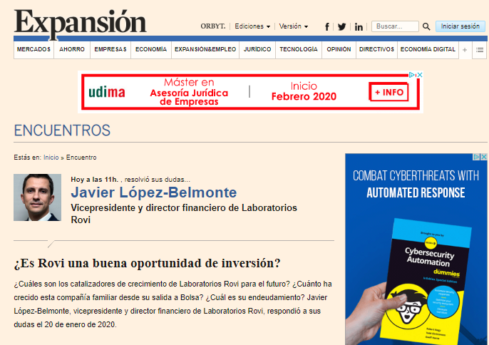 “Seguimos avanzando en la fase de aprobación de Doria® y ahora nos encontramos más cerca de su comercialización. Confiamos en el potencial del producto y esperamos poder ofrecer pronto una alternativa terapéutica para el tratamiento de esta grave enfermedad crónica y progresiva” ha declarado Juan López-Belmonte, Consejero Delegado de ROVI.