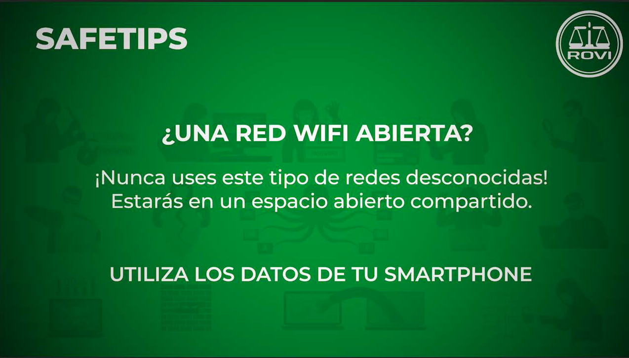 ¡Nunca uses redes de Wifi abiertas! Estarás en un espacio compartido donde cualquiera puede conectarse en cualquier momento. Puede ser un usuario como nosotros, que solo quiera conectarse a Internet, o un hacker. Si tienes una conexión de datos móviles, evita las redes Wifi gratis. Tu conexión con tu operadora es más segura.
