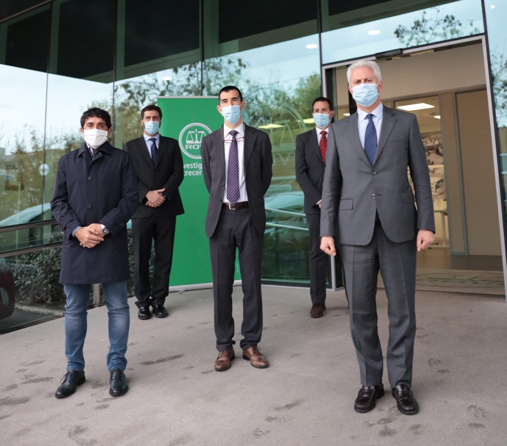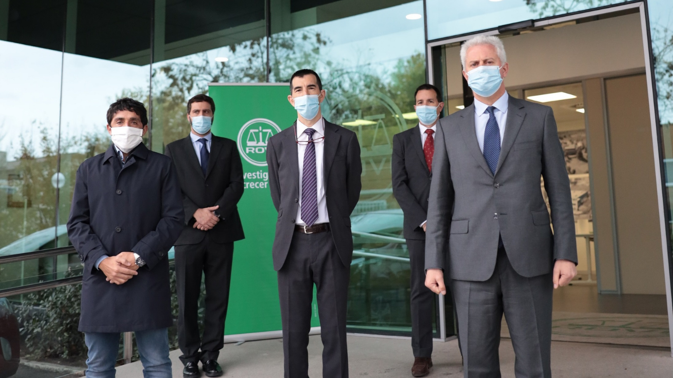 Miguel Ángel Martín Perdiguero (vicealcalde), Guillermo Paraja (director de planta de San Sebastián de los Reyes), Miguel Ángel Ortega (director Área Industrial de ROVI), José Cristóbal (director de Ingeniería de ROVI) y Narciso Romero (alcalde de San Sebastián de los Reyes).