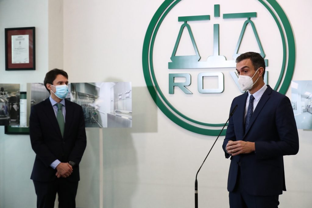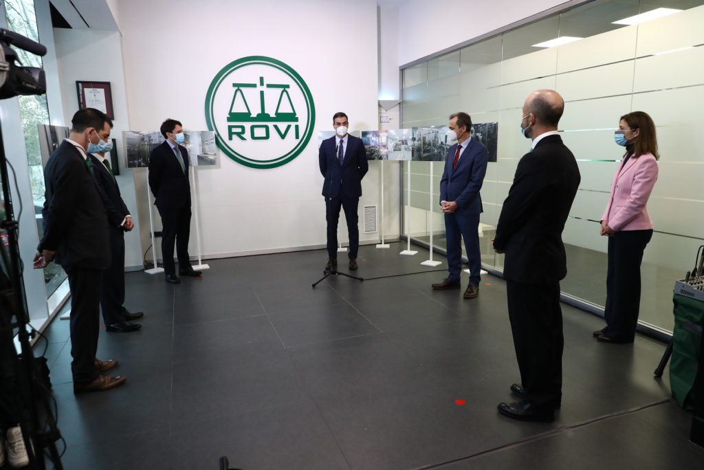 Las instalaciones de Laboratorios Farmacéuticos ROVI, S.A. (ROVI), en San Sebastián de los Reyes (Madrid) han acogido esta mañana la visita institucional del presidente del Gobierno de España, Pedro Sánchez; el ministro de Ciencia e Innovación, Pedro Duque; y la directora de la Agencia Española de Medicamentos y Productos Sanitarios (Aemps), María Jesús Lamas.