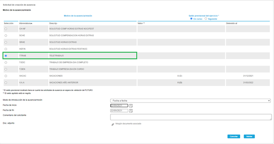Adicionalmente, hay que realizar una solicitud de ausencia y seleccionar Teletrabajo.