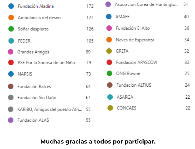 El Comité de Donaciones de ROVI quiere agradecer la gran acogida que ha tenido esta iniciativa, que ha recibido más de 80 propuestas de colaboración. A continuación, compartimos el resultado de las votaciones de las asociaciones que optaban a hacerse con uno de los premios.