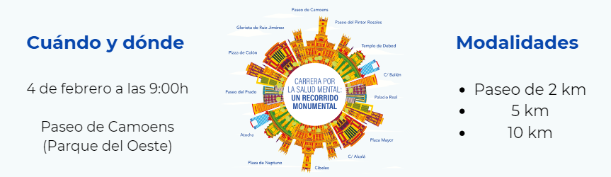 El próximo 4 de febrero se celebrará la XII Carrera por la Salud Mental que organiza Fundación Manantial. Como cada año, ROVI te invita a participar en alguna de las modalidades (paseo de 2 km, 5 km o 10 km) de esta competición solidaria que recorre alguna de las más emblemáticas calles del centro de Madrid.