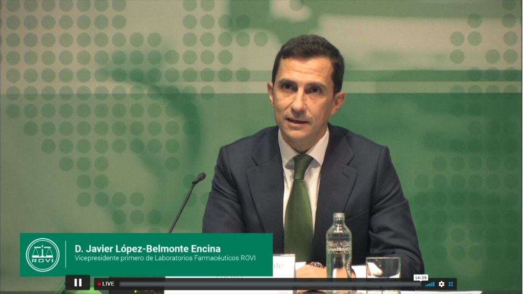 Laboratorios Farmacéuticos Rovi, S.A. ha celebrado hoy su Junta General Ordinaria de Accionistas, en la que se ha realizado una valoración del ejercicio 2019, marcado por un crecimiento significativo. La compañía incrementó sus ventas tanto de los productos farmacéuticos con prescripción (un 30%) como de la división de fabricación de productos a terceros (un 20%) y, muy especialmente, de las heparinas de bajo peso molecular (un 46%). “Ha sido un año sobresaliente para ROVI y esperamos seguir adelante ganando presencia internacional y comprometidos con la Investigación”, ha destacado D. Juan López-Belmonte Encina, Consejero Delegado de ROVI.