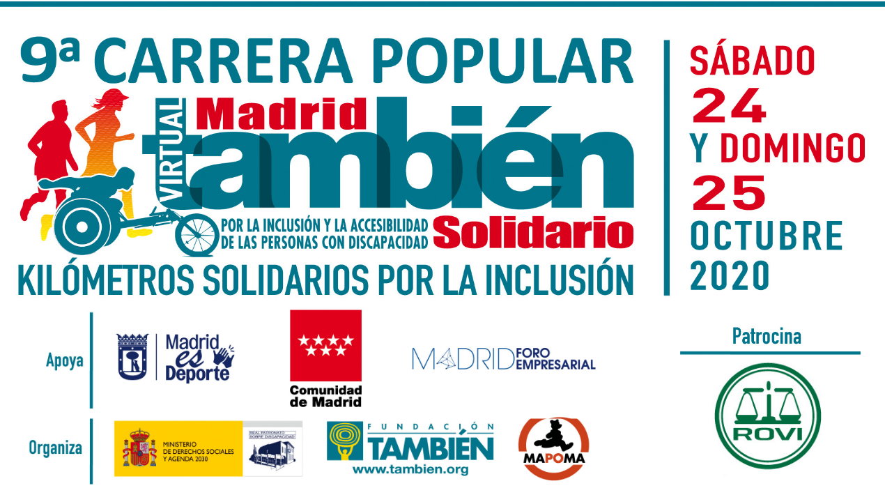 Ampliamos el plazo de inscripción a la Carrera Madrid También Solidario hasta el 19 de octubre. Si todavía no te has apuntado y quieres disfrutar de la experiencia de correr una carrera virtual, completa este formulario para reservar dorsal y recibir el resto de las instrucciones sobre cómo realizar la inscripción.