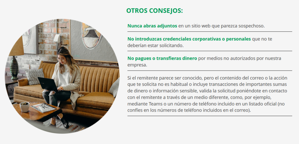 Este ejercicio ha demostrado que, aunque muchos habéis aplicado lo aprendido en las campañas sobre Ciberseguridad realizadas en 2021, otros no identificasteis las señales de peligro y caísteis en el engaño, permitiendo el robo de vuestras credenciales, usuario y contraseña; esto es muy grave para la seguridad de nuestra compañía.