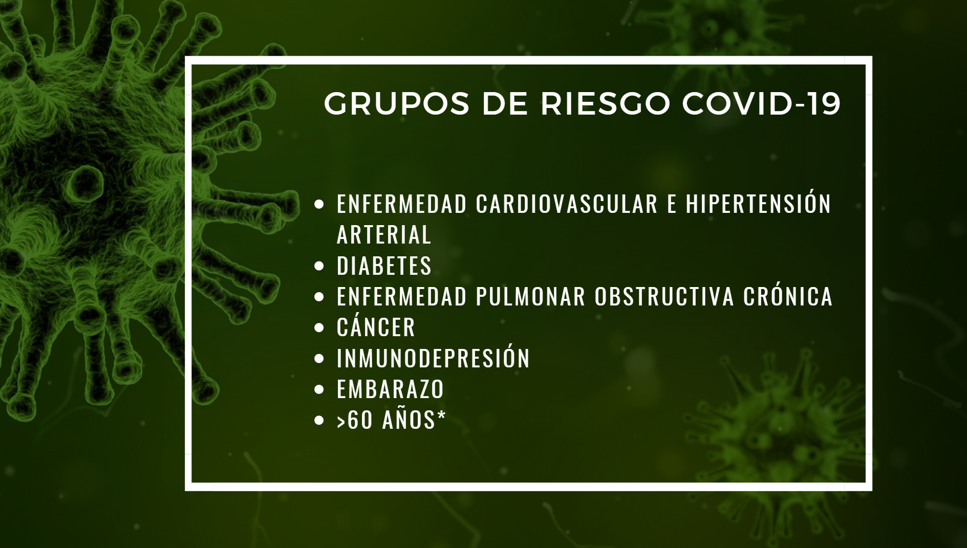 *NOTA: cuando el empleado tenga >60 años, y no concurran ninguno de los otros factores de riesgo, se valorarán de forma individualizada estos casos, conforme a las recomendaciones del Servicio de Prevención.