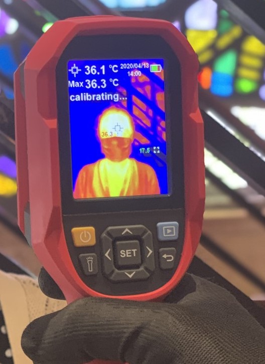 Para ello hemos instalado cámaras termográficas en nuestros centros de Julián Camarillo (hall del edificio B), Alcalá de Henares (carpa de entrada) y San Sebastián de los Reyes (recepción). Estos dispositivos realizan la toma de temperatura de forma ágil y precisa, permitiéndonos identificar a las personas que podrían tener fiebre que, como sabéis, es, junto con tos y dificultad respiratoria súbitas, uno de los síntomas asociados a la infección por coronavirus.