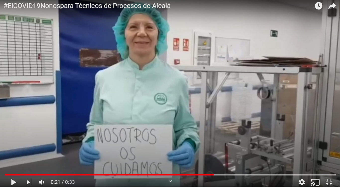 - Y, como no, mención especial a todos los que cada día estáis acudiendo a los centros de trabajo porque vuestra presencia es fundamental para seguir contribuyendo a solucionar esta crisis sanitaria. Habéis salido cuando otros se quedaban en casa, creyendo y confiando en nosotros, implantando y cumpliendo escrupulosamente las medidas establecidas, más de las que ya tenemos en nuestro sector, por vuestra seguridad y más que nunca, por la de todos.