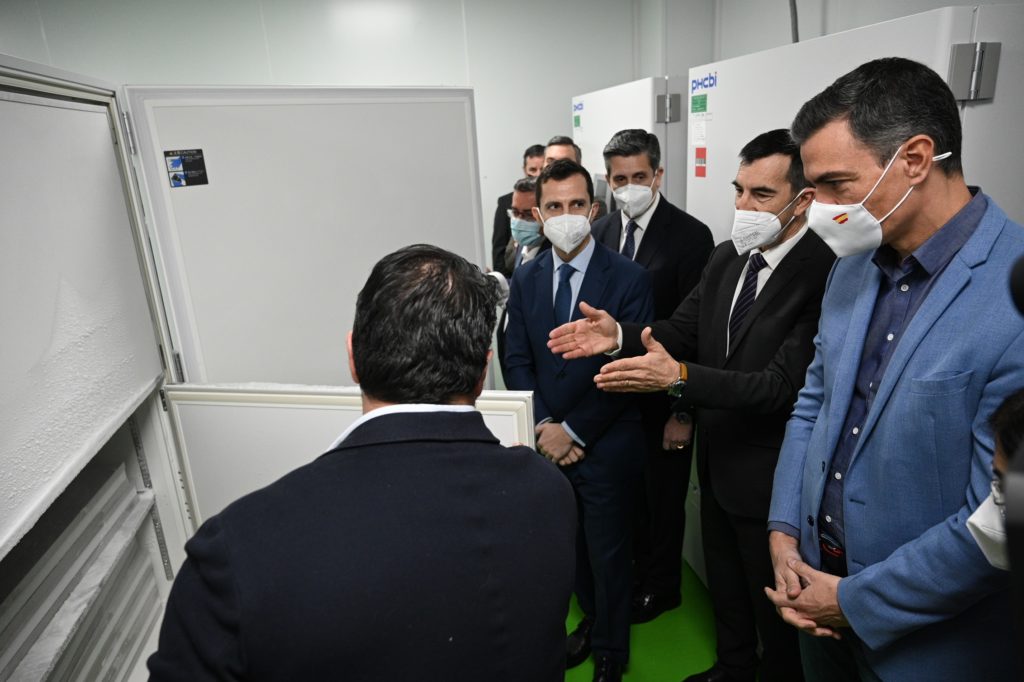 The President of the Government, together with the Minister of Health, Consumer Affairs and Social Welfare, Carolina Darias, and the Mayor of the city, Francisco Cuenca, were able to tour the facilities accompanied by Juan López-Belmonte, President and CEO of ROVI; Miguel Ángel Ortega, Industrial Director of ROVI; and Juan Carlos Gil, Managing Director of Moderna.