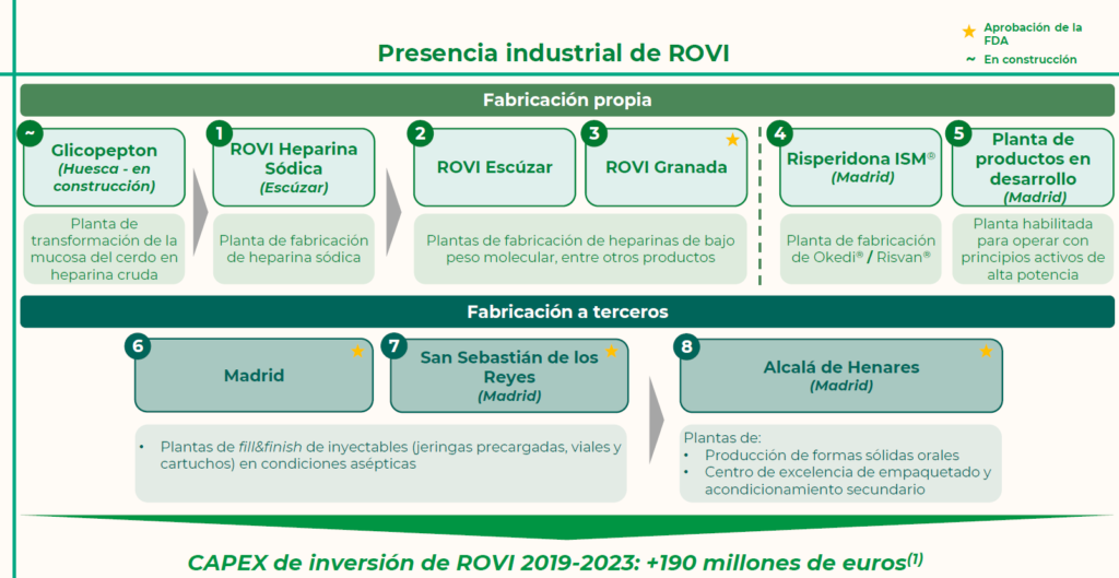 Likewise, ROVI remains committed to the vertical integration of its value chain in order to achieve strategic autonomy in its medicine manufacturing process. In this respect, ROVI is making significant investments in the construction of a new plant in Huesca, which will transform pig mucosa into crude heparin and is considered likely to come into operation in 2026.